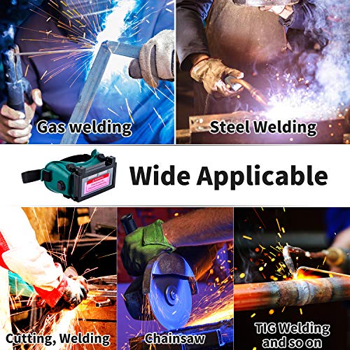 - Ampliamente Aplicaciones: Estos vidrios de soldadura adoptan batería solar, no es necesario reemplazar la batería; diseño fácil de operar, seguro y liviano; las gafas de soldadura son adecuadas para soldadura de gas, soldadura de acero, corte, soldadura, etc.