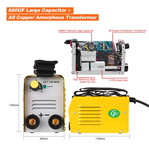 KKmoon Soldadora de arco 250Amps,Máquina de soldadura IGBT,Mini soldadora eléctrica,portátil antiadherente para...