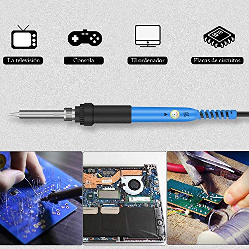 Kit de soldador eléctrico, 60W Soldador de estaño con Interruptor On/Off,Temperatura Ajustable...
