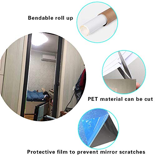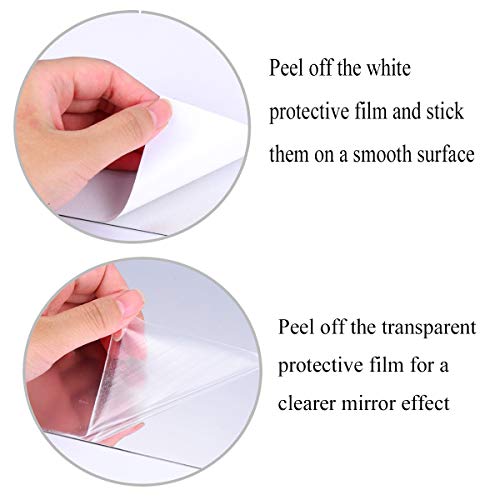 - Buena calidad: estos espejos flexibles de no vidrio están hechos de material PET, con superficie lisa y buena textura, la parte posterior autoadhesiva es conveniente para su uso.