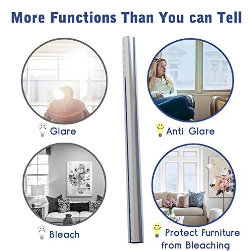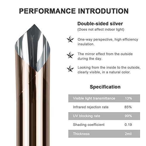- ♣【Protección la Privacidad】Esta vinilo película puede proporcionar mejor privacidad durante el día mientras no te impide disfruta los paisajes exteriores con el efecto de un manera espejo. Pero en fuerte de luz la noche puede ser visto en el interior y en el exterior, recuerda para colgar cortinas