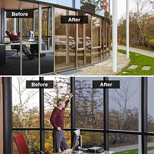 - 【Súper Fácil de Instalar】: Limpie cristales sin ningún polvo y corte el vinilo ventana al tamaño conveniente; Despegue la membrana protectora de espalda, rocie suficiente agua o agua de jabón al cristal y el espalda del vinilo, coloque el vinilo, quite agua de extra y burbujas con una toalla seca.