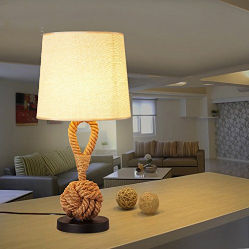 Lámparas de escritorio Lámparas de mesa y mesilla Lámpara de mesa creativa de la cuerda, cortina de la tela, lámpara de mesa europea del estilo retro,...