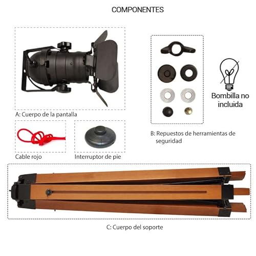 - VINTAGE: La lámpara cinema de Pie es ideal para colocarla en un rincón para dar un toque de luz con diseño retro industrial, en el salón para enfocar el sofá o en tu habitación para darle una decoración estilo cinemático. Ideal para bar, estudio, cafetería, dormitorio, oficina, comedor, etc.
