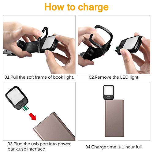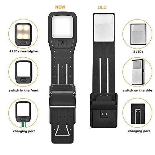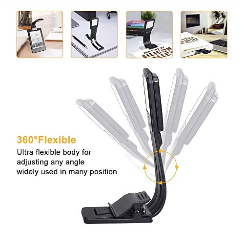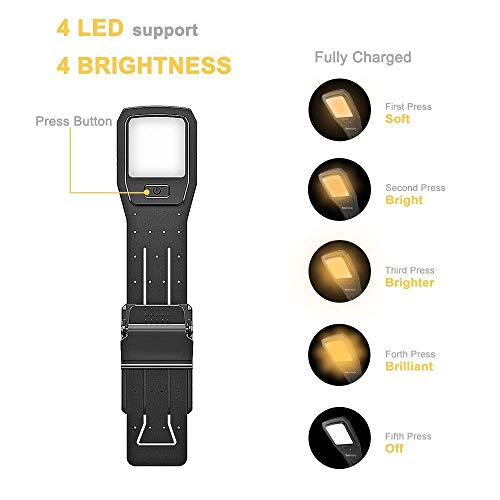 Toolove Luz de Lectura para Libro, Lámpara de Lectura LED Recargable USB, Libro Luz LED Plegable con Clip, 4 Brillo Ajustable Plegablepara Libros, Revistas, eReader, eBook, Tableta, iPad, Viajes