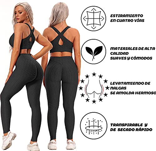 Leggings Yoga Mujer Pantalones Deportivos Mujer Largos Leggings para Running Deportes 3D Impresión Pantalones Push up Mujer Legging Pantalon Fitness Polainas de Gimnasio (Negro, M)