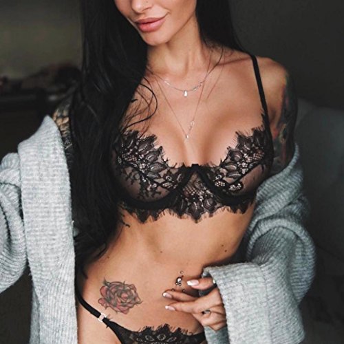 Moda mujer Sexy encaje de pestañas Babydoll ropa interior tanga Set lencería...