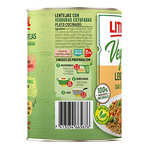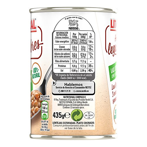 LITORAL Hoy Legumbres Lentejas con su sofrito - Plato Preparado Sin Gluten - 435g