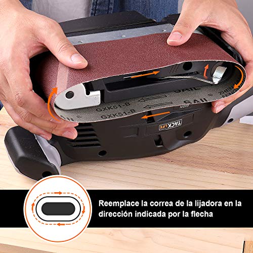 TACKLIFE Lijadora de Banda, 600W Lijadora Eléctrica, 13 Lijas 75x457mm, 6 Velocidad...