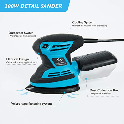 Lijadora Eléctrica 200W Tilswall, 15000RPM Lijadora de Detalles Mouse de Diámetro Orbital 1,6mm, con 6 Piezas Lijas de 60 grano y 6 Piezas de 120 para Alisar Madera y Quitar Pintura