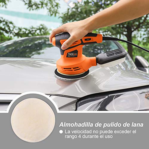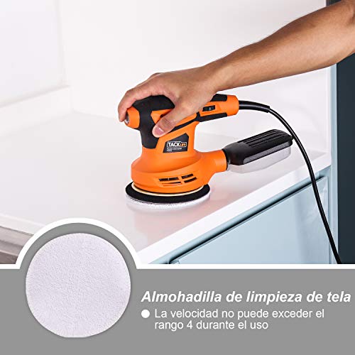 - ➤ SISTEMA DE CAMBIO RÁPIDO DE LIJA: Tacklife Lijadora Orbital es fácil cambiar de lijas gracias al diseño de gancho y bucle; Si adhiere una tela a la base de lijado con sus nuevas pinzas situadas a ambos lado, obtendrá una pulidora
