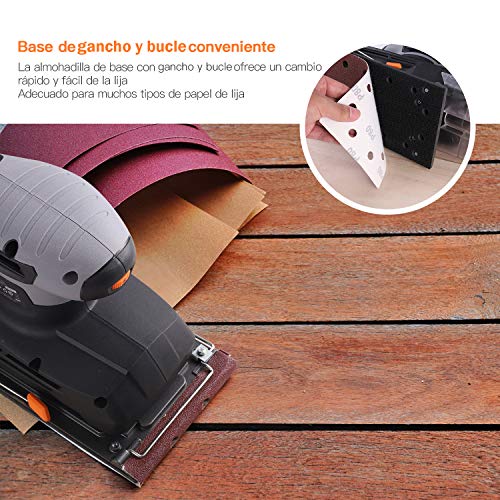 TACKLIFE Lijadora Orbital, Lijadora Eléctrica 300W, 10PCS Papeles de Lija, 230x115MM Base...