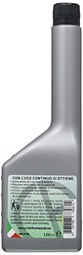 - uso: añadir 125 ML de producto (1 Botella) cada 40/50 litros de gasolina (aproximadamente 1 litro cada 300/400 litros de gasolina, Equivalente AL 0,2 – 0,3%). para una mejor mezcla con La Gasolina, SE recomienda de verter EL aditivo en el Depósito antes de realizar EL repostar. repetir EL tratamiento cada 1500 km para conservar Los beneficios. nota: puede SER necesario EL uso de un embudo para facilitar La inserción del aditivo en el Depósito de combustible.