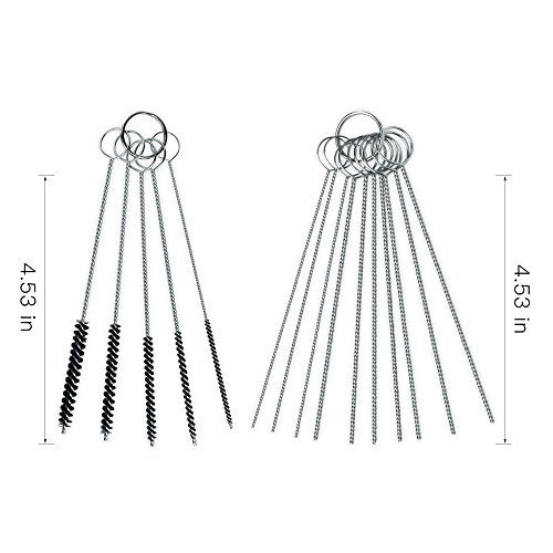 - FACILITE SU TRABAJO: 20 agujas de limpieza, 13 alambres de limpieza, 10 cepillos de nylon y una llave de acero inoxidable de diferentes tamaños pueden ayudarlo a limpiar la suciedad que no puede ver.