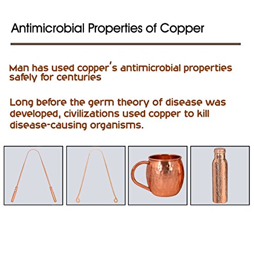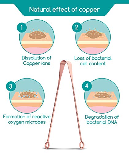 - ►►► 100% COBRE: El cobre tiene propiedades antimicrobianas naturales, esto ayuda a limpiar la lengua. Los iones de cobre son capaces de unirse a los compuestos de azufre a sí mismos y así eliminarlos.