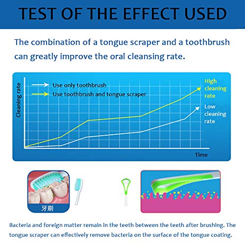 - Utilice el limpiador lingual para evitar el mal olor eliminando la placa, la suciedad y las bacterias de su lengua. Fresco aliento, cuidado de la boca, higiénico, contra bacterias y curativo olor a la boca.