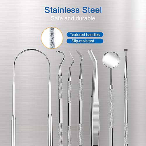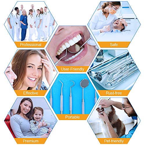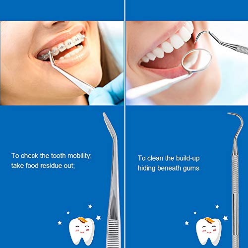 - 【kit completo de limpieza dental 7PCS】: el paquete contiene 1 espejo, 1 Limpiador de Lengua y 5 dispositivos de kit diferentes para diferentes propósitos. Puede ayudarte a limpiar bien los dientes.