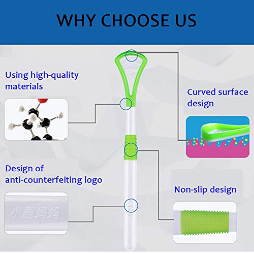 - Fácil de usar: Este limpiador de lengua tiene un mango antideslizante de doble cara que es ergonómico y experimentado y no se desliza fácilmente de sus manos.