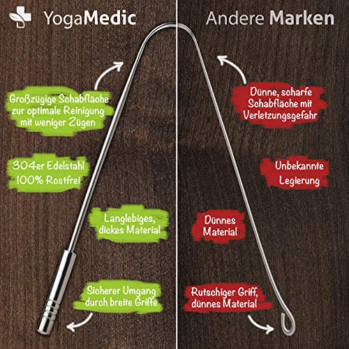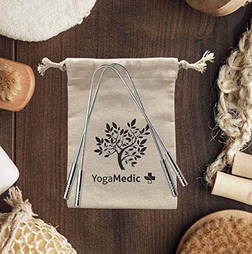 YogaMedic Limpiador de Lengua [2x] - 100% acero inoxidable, naturalmente Anti-Microbiano para...