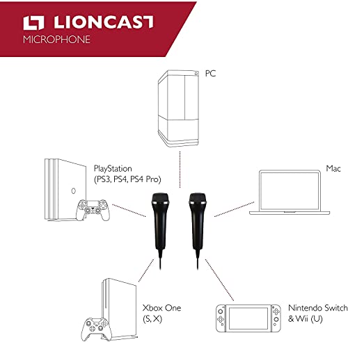 Lioncast 2x Micrófonos USB universal para ordenador y Karaoke; Compatible con juegos de Wii, PS3, PS4, Xbox One y PC como Guitar Hero, Rock Star, etc .; Cable de 2,5 m – Negro
