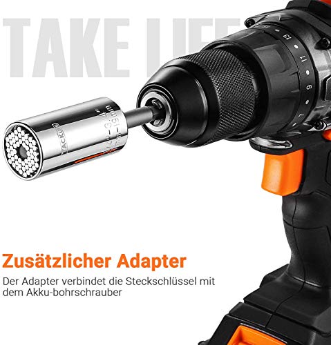 Vaso Universal, Tacklife ASW01A 3Pcs N en 1 multifunción 1/4 » – 3/4 » (7mm-19mm) Vaso Universal con Acero al Cromo-vanadio, Llave Métrica Adaptador de Taladro Eléctrico