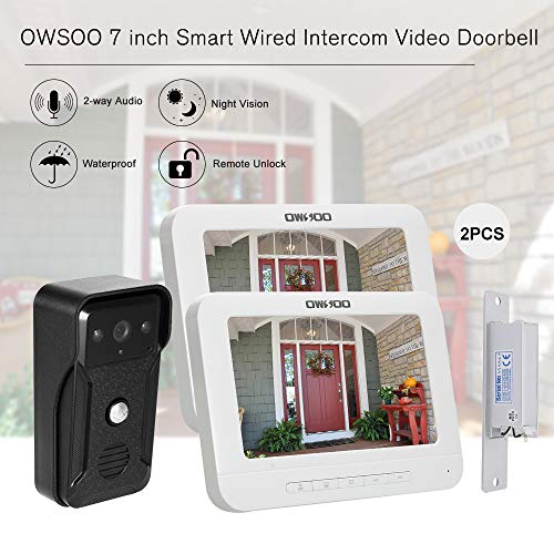 OWSOO 7 Pulgadas Videoportero, 2 Monitor Interior + 1 Cámara Exterior +...