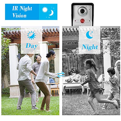 - 【OWSOO Videoportero】 TFT LCD de 7 pulgadas, sin radiación, bajo consumo de energía y alta definición. La unidad exterior soporte visión nocturna por infrarrojos automática, también cuenta con un material resistente al agua y duradero, equipado con una cubierta a prueba de lluvia, fácil de instalar.