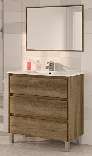Miroytengo Lote mobiliario baño con Mueble de 3 cajones, Espejo a Juego,...