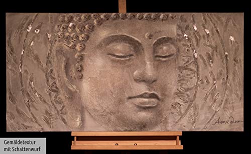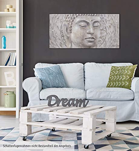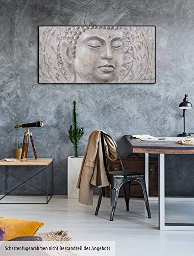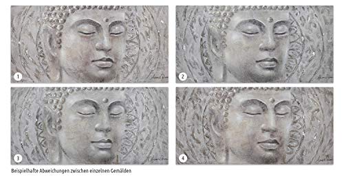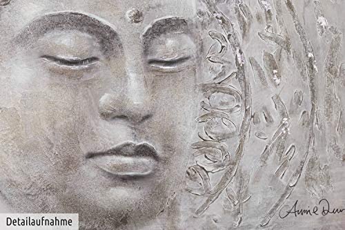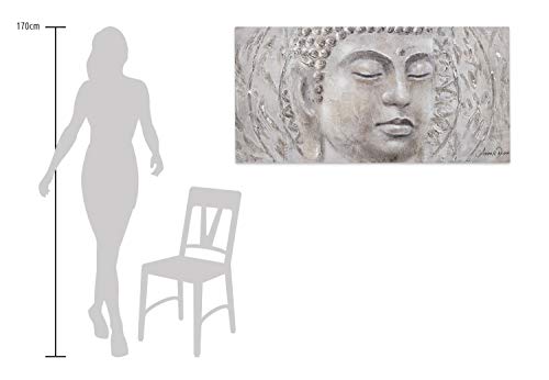- El cuadro acrílico 'Find your Inner Peace' de medidas 120x60cm es una obra de arte moderno pintada a mano con el tema 'Buda Religion Fe Gris '. No es una impresión de poco valor; podrá sentir la intensa textura de los colores acrílicos.