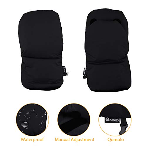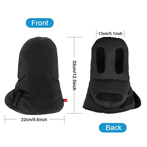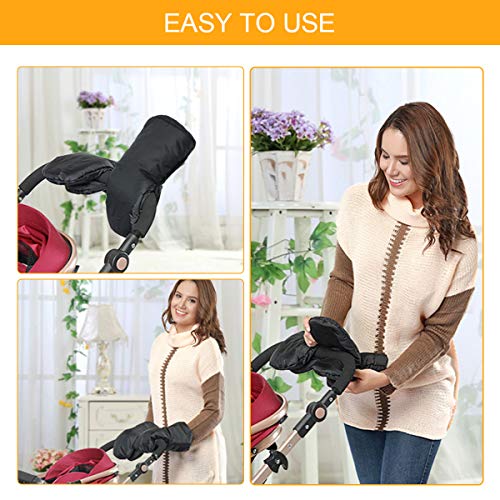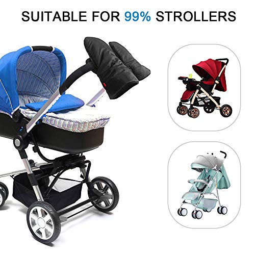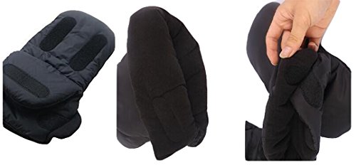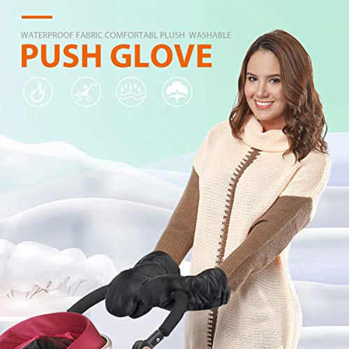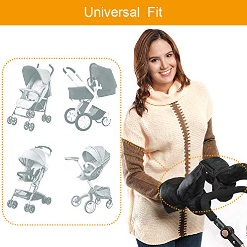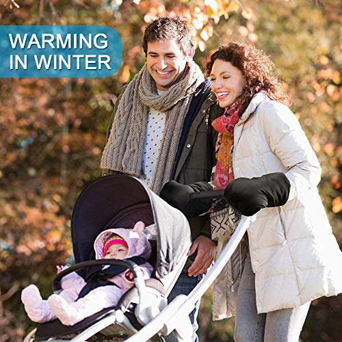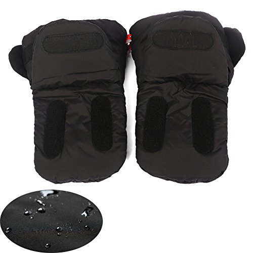 Guantes de Silla de Paseo, otumixx Guantes para cochecito con forro polar Impermeable Caliente a prueba de viento Manoplas para cochecitos coches eléctricos manillar de bicicleta - Negro