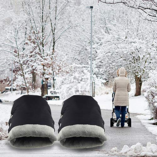Guantes Silla de Paseo,manoplas para carro bebe,Impermeable a Prueba de Viento Para Extra Grueso Cálido Invierno Cochecito de Bebé Guante para Todos los Cochecitos-negro
