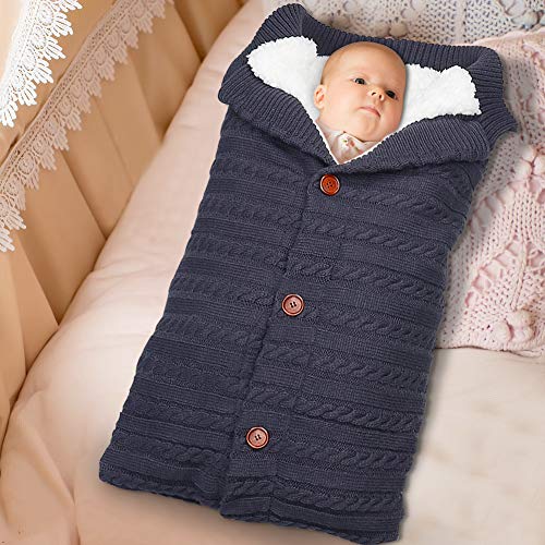 Sacco Nanna Per Neonati, Coperta Per Neonati, Lavorata A Maglia Spessa, Morbida E Calda, Per Bambini Da 0 A 12 Mesi, Per Culla E Passeggino, 0 – 12 Mesi Colore: Grigio