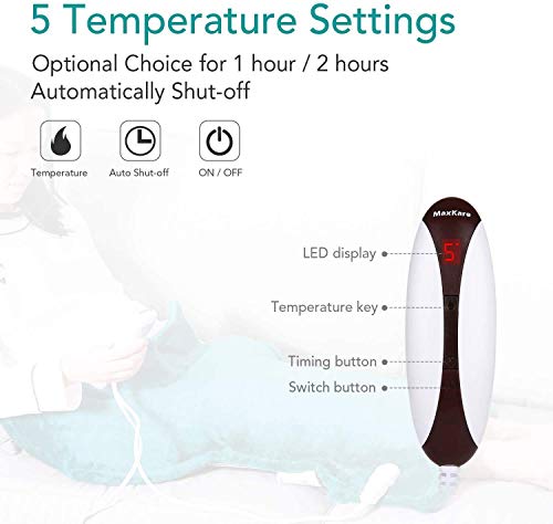 - 【Ajuste inteligente de calefacción / temporizador】 Elija entre 5 niveles de calefacción para el nivel exacto de calor que desea; 2 configuraciones de temporizador (1 o 2 horas) promueven la garantía de seguridad y la conservación de energía; El cable de alimentación largo (6 pies) le permite moverse libremente mientras se relaja con la envoltura.