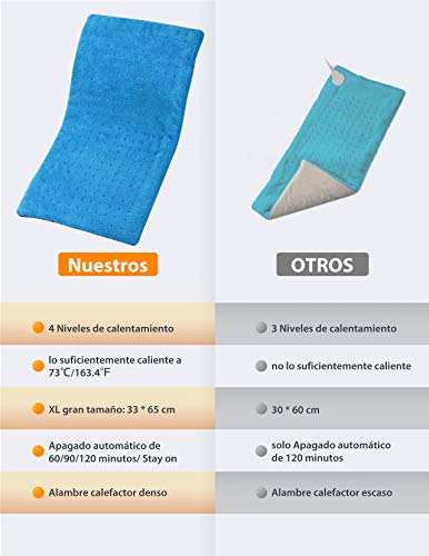 - 【Diseño de Cuerpo Completo】De gran tamaño 30X60cm, la esterilla eléctrica es más adecuada para la cervical, el espalda, el cuello, el estómago, los muslos, las piernas y todas las partes del cuerpo.Con el velcro, es más eficaz para aliviar el dolor muscular y mantener el calor.