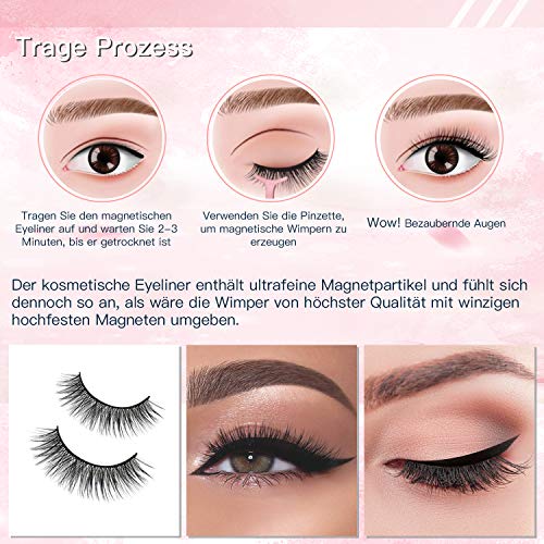 AOVSHEY Pestañas Magneticas Delineador de ojos magnético 5 pestañas magnéticas con delineador...
