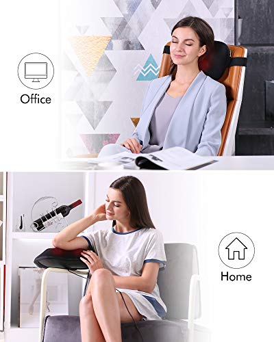 - 【ALTA CALIDAD Y MEJOR REGALO】Cuenta con el motor de cobre, el masajeador shiatsu puede reducir el ruido por debajo de 45 dB, proporcionando la mejor experiencia de masaje. La tela de malla 3D de alta calidad transpirable y cuero PU durable, cómodo y duradero. El mejor regalo para las personas que sufren dolores de cuello, hombro o espalda.