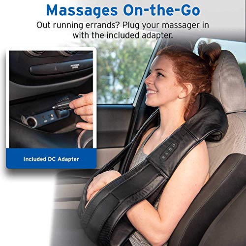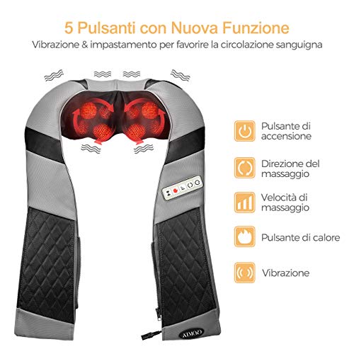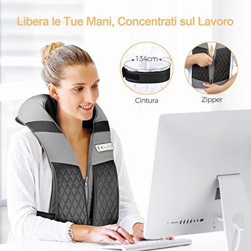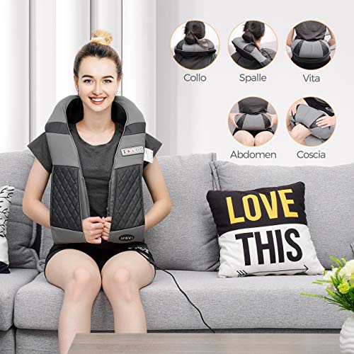 - ✔ 3D Masajeador Ergonómico: Diseño en forma de U correspondiente a la ergonomía adapta perfectamente cuello. También el masajeador shiatsu se ajustará a diferentes partes del cuerpo: hombro, brazos, espalda, muslos, pantorrillas, pies y más.