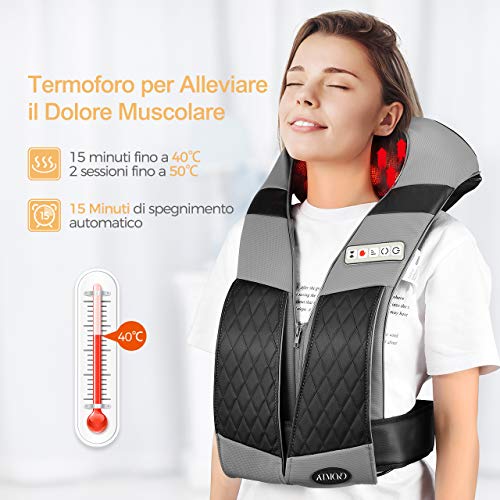 - 【MASAJES SHIATSU PROFESIONALES】El masajeador de cuello con función de calentamiento infrarrojo ofrece un masaje de amasamiento profundo, ideal para aliviar el dolor muscular en su cuello, hombro, espalda, piernas, y pies. El masajeador de hombros ergonómico cuenta con 8 cabezales de masaje de rotación bidireccional. Los nodos de masaje auto-reversa cada minuto para una mejor distribución de los efectos del masaje.