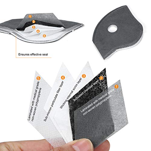 - 【CINCO CAPAS DE MATERIALES DE ALTA CALIDAD】: Una capa transpirable, una capa de carbón activado, una capa de hilo de algodón, una capa gruesa de algodón, una capa interna de textil no tejido, puede filtrar completamente el polvo, productos químicos, humo y gránulos, polen de la alergia al escape automotriz, PM 2.5 y otras sustancias dañinas