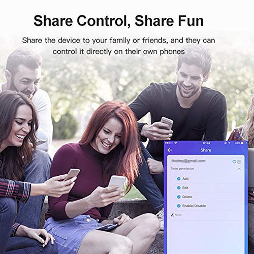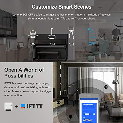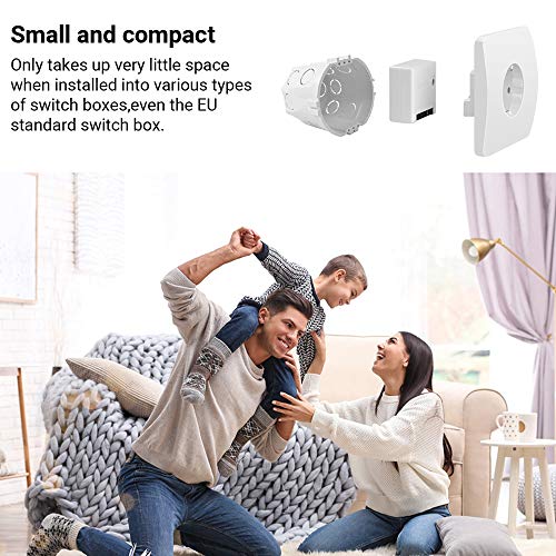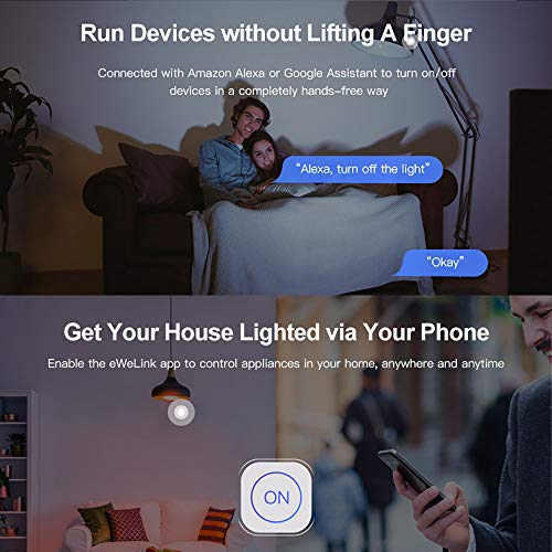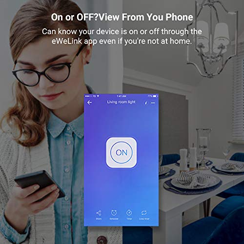 - 【Control Remoto Mediante APP】:Controle sus electrodomésticos con el teléfono inteligente en cualquier momento y en cualquier lugar. Verifique el cambio de estado del dispositivo en su teléfono en tiempo real.puedes saber que tu dispositivo está encendido / apagado a través de la aplicación eWeLink incluso si no estás en casa.También puede compartir su dispositivo con su familia para controlarlo juntos.