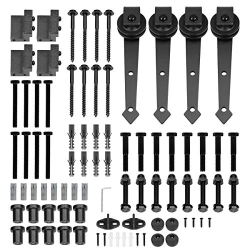 - MATERIAL DE MONTAJE COMPLETO: Los tornillos necesarios se incluyen en el contenido suministrado. Tenga en cuenta que la hoja de la puerta utilizada solo debe tener la mitad de ancho que los rieles de deslizamiento suministrados.