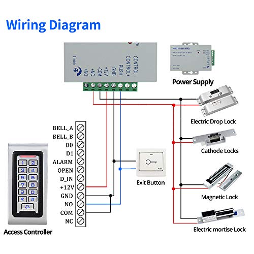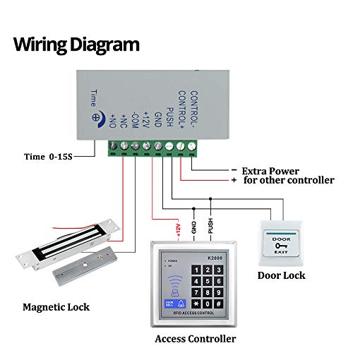 - 1, Introducción: kit de sistema de control de acceso completo, que incluye teclado de control de acceso, fuente de alimentación, cerradura eléctrica y una puerta de salida.