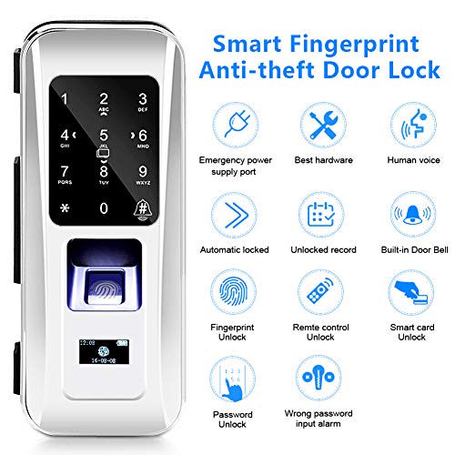 Cerradura de Seguridad Inteligente, Cerradura Electrónica Biométrica de Puerta de Vidrio con...