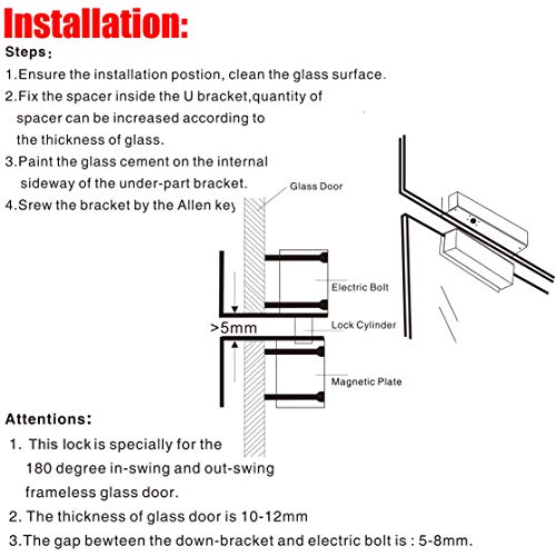 - ♥♥♥ 【installation Fácil instalación y amplio rango de aplicación】 Este producto es muy conveniente de instalar, no es necesario perforar, cablear, instalar directamente el cuerpo de la cerradura principal y la caja de la cerradura auxiliar se puede usar en la puerta, muy simple. Es muy versátil y puede equiparse con puertas de vidrio sin marco / enmarcadas, puertas simples / dobles, puertas izquierda / derecha.