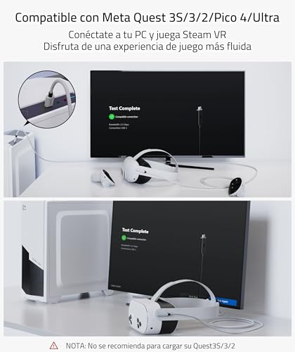 - Compatible con los accesorios Meta Quest 3S/Quest3/Quest2/Pro/Pico 4: El cable de enlace Syntech conecta el Quest3/2 y Pico Serie a un PC de juegos para que puedas jugar a todas las aplicaciones de Rift y a los juegos de Steam VR, proporcionando una experiencia de RV perfecta en el PC. El color y el diseño del cable combinan perfectamente con el auricular Quest3/Quest3S.