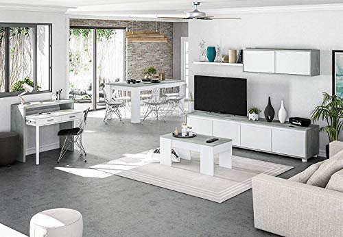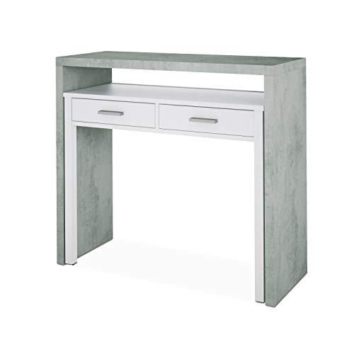 Habitdesign Mesa Escritorio Extensible, Mesa Estudio, Consola, Acabado en Color Gris Cemento...