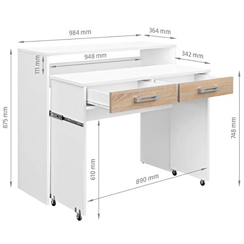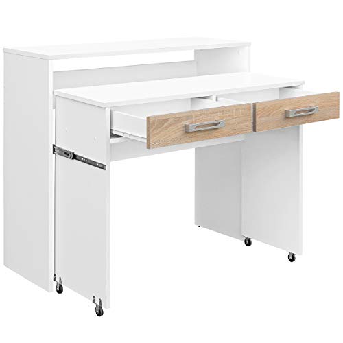 - Ideal para espacios de tamaño reducido, parte extensible interior de la mesa con ruedas y dos cajones extensibles