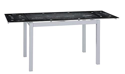 Suárez Bakery Mesa Cocina Cristal y Acero Color Negro Extensible Comedor, Estructura...