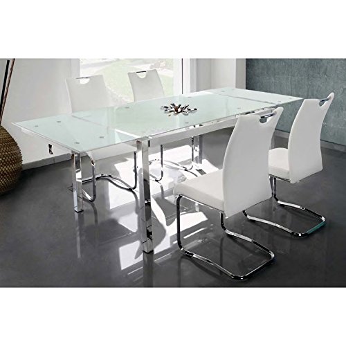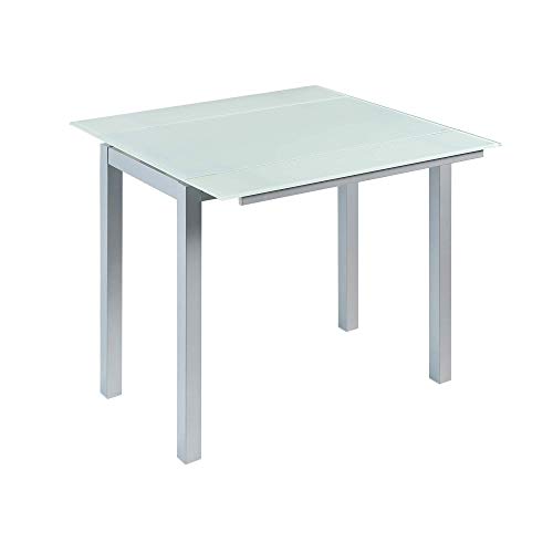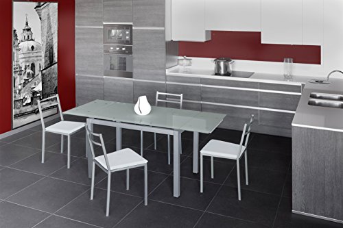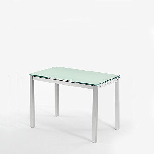 Mesa Extensible de Cristal translúcido Color Blanco y Estructura Gris par Comedor...