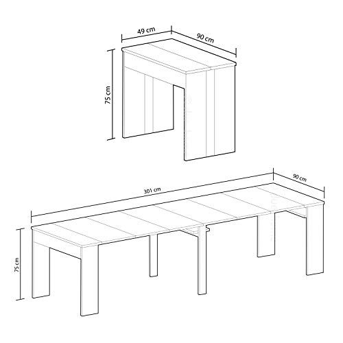 - Medidas mesa consola cerrada: 49 cm (largo) x 90 cm (ancho) x 75 cm (alto).
